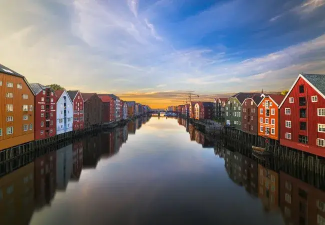 Arrival at 09:00, Departure at 16:00 Trondheim is the third largest - and second oldest - city in Norway. The town was originally called Kaupangen upon its founding in 997 A.D. by Viking king Olav Tryggvason. The city commands the trade routes linking Southern Norway with the fjord lands to the north. Trondheim quickly became a major commercial and cultural centre - the city served as Norway's royal capital. Trondheim's old city features broad avenues and attractive 17th-century wood buildings - a legacy of the rebuilding that followed a disastrous fire that levelled the city in 1681.