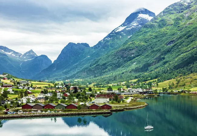 Arrival at 08:00, Departure at 16:00 By the mid-19th century, European travellers were cruising the waters of the Nordfjord and visiting the village of Olden. The Romantic Movement inspired this new taste for dramatic landscape, and Norway had plenty of dramatic landscapes. Then as now, travellers were impressed, moved, and not frequently overwhelmed by the stark contrast between peaceful rural farmsteads and a towering wilderness of mountain peaks and glaciers. For many years, Olden was home to American landscape artist William H. Singer (1868-1943). Scion of a Pittsburgh steel family, Singer provided Olden with a road and a regional hospital.