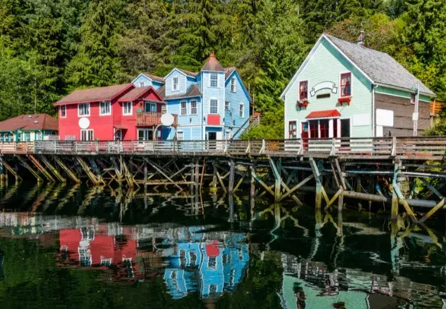 Ketchikan is known as Alaska's "First City" because it's the first major community travelers come to as they journey north. Located on an island, Ketchikan began life as an Indian fishing camp. The name Ketchikan comes from a Tlingit phrase that means "eagle with spread-out wings," a reference to a waterfall near town.