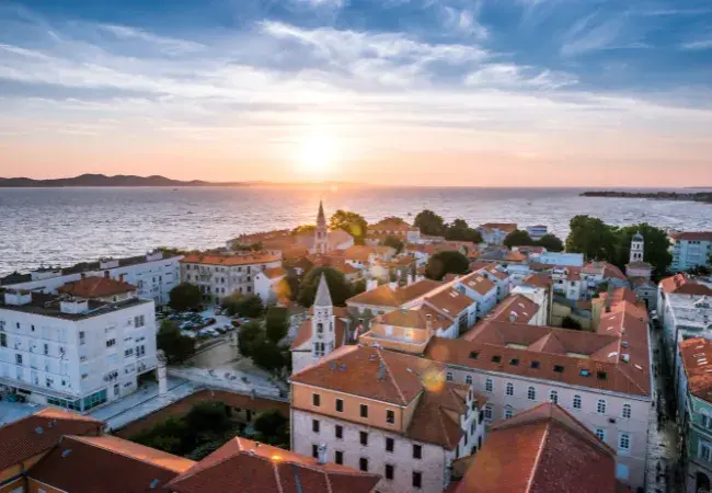 What sets Zadar cruise port apart is its blend of old and new. The historic old town is a mix of Roman ruins, medieval churches, cosmopolitan cafés, and contemporary museums, all side by side within its ancient city walls. Fortunately, it is not overrun with tourists, so it is a wonderful place to explore while you are in port, and it has some unique attractions. Two of the most iconic landmarks in Zadar are like nothing you will have seen or heard before. The Sea Organ is an experimental musical instrument that plays music using sea waves and tubes located underneath a set of large marble steps. The Sun Salutation is a 22-metre-wide circle made up of 300 glass plates that absorb sunlight during the day and then put on a light show at night. Zadar is not your typical postcard destination, but it has its own kind of charm. It is a warm and vibrant city where you can sit back with a glass of wine at a street café or enjoy adrenaline-fuelled water sports along the coast. Its restaurants are known for their mix of local and regional cuisine, and it is surrounded by stunning countryside.