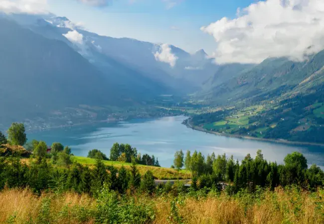The peaceful village of Olden has the perfect Fjordland cruise setting - nestling at the southern end of one branch of the beautiful Nordfjord and at the entrance to the gorgeous Oldedalen Valley.