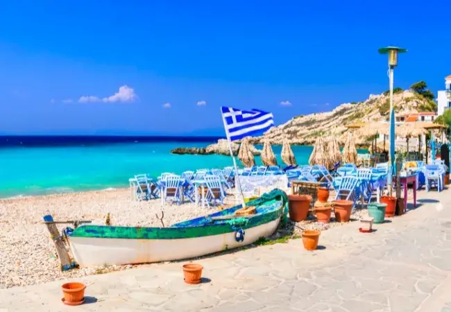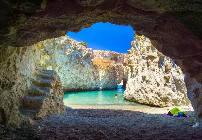 A volcanic island with over 70 beaches, or explore Kleftiko with its sea caves and impressive rock formations.